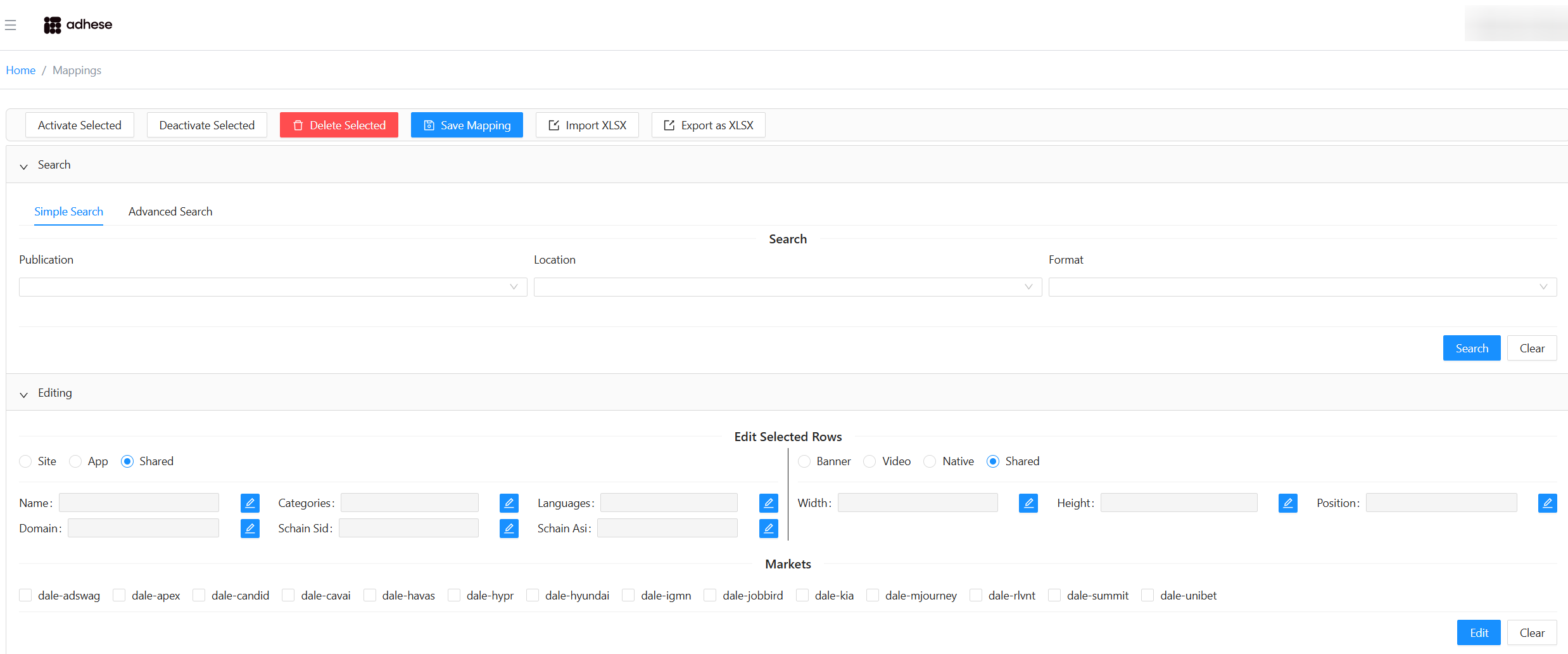 Click Export as XLSX to download all mapping data as a spreadsheet.