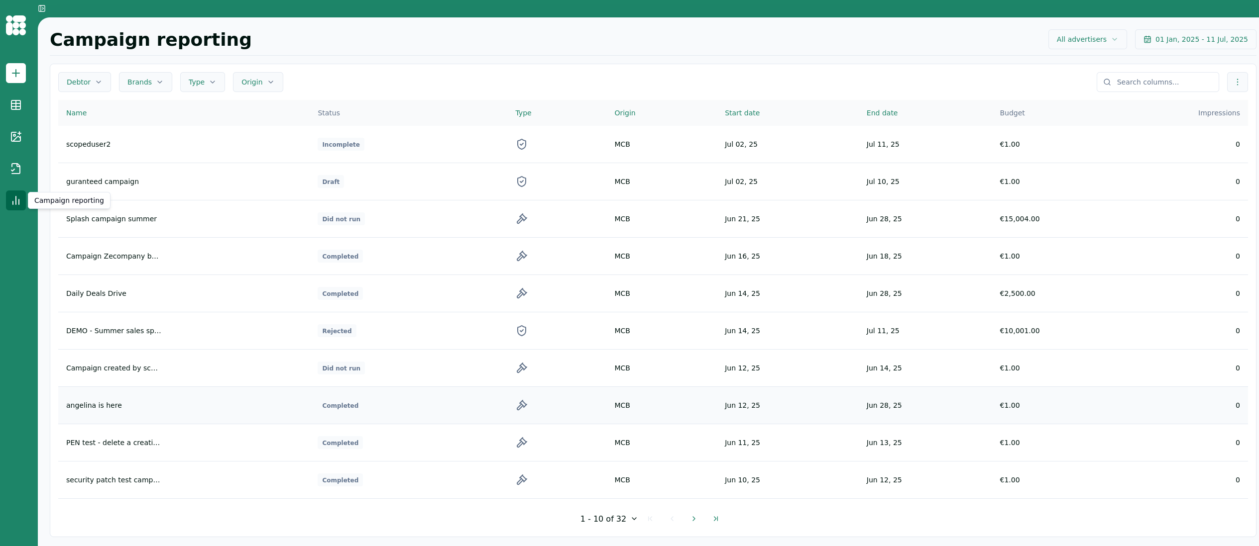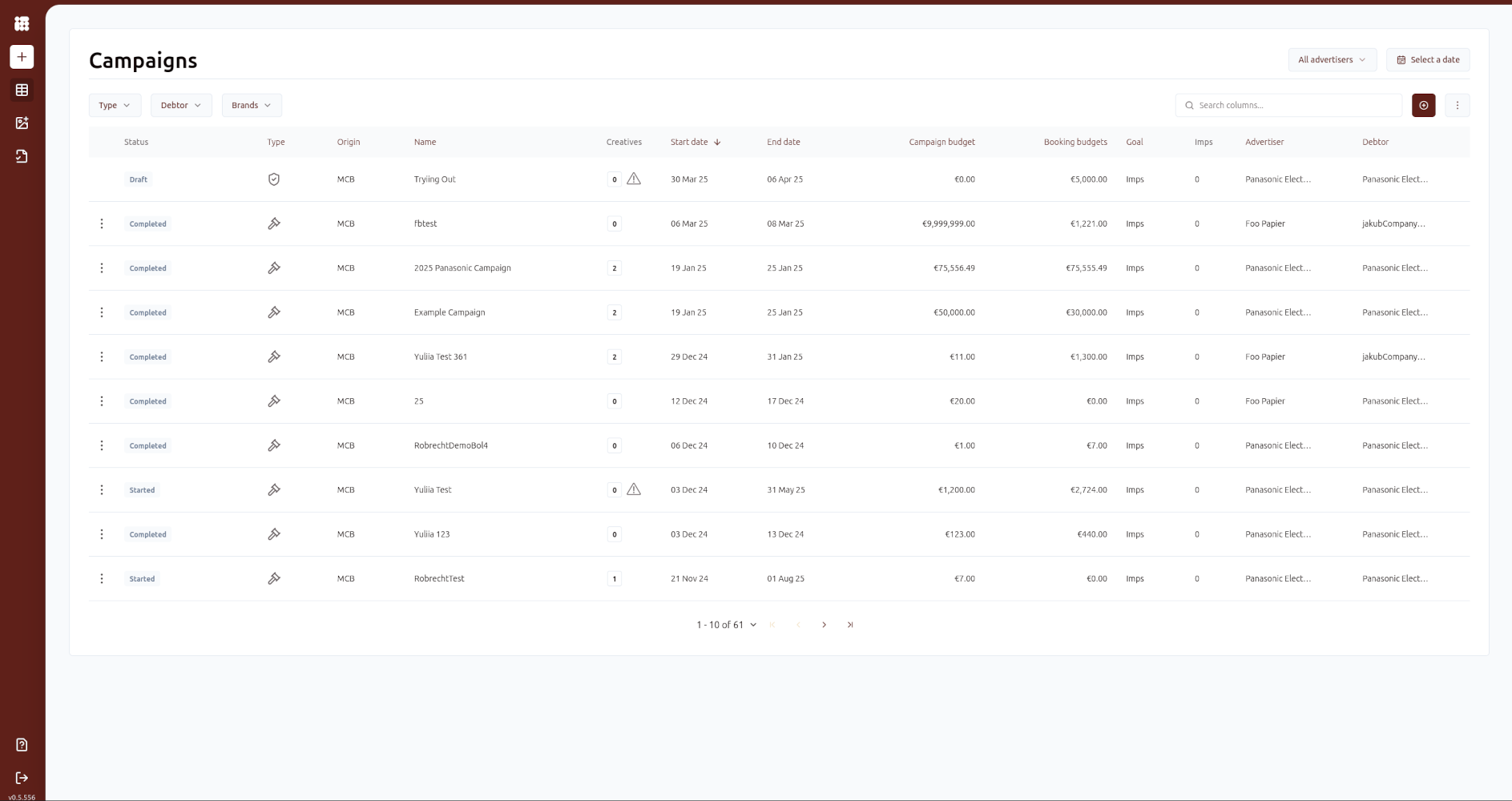 When you log into Adhese using the Campaign Manager interface, the first thing you will see is the Campaigns screen: