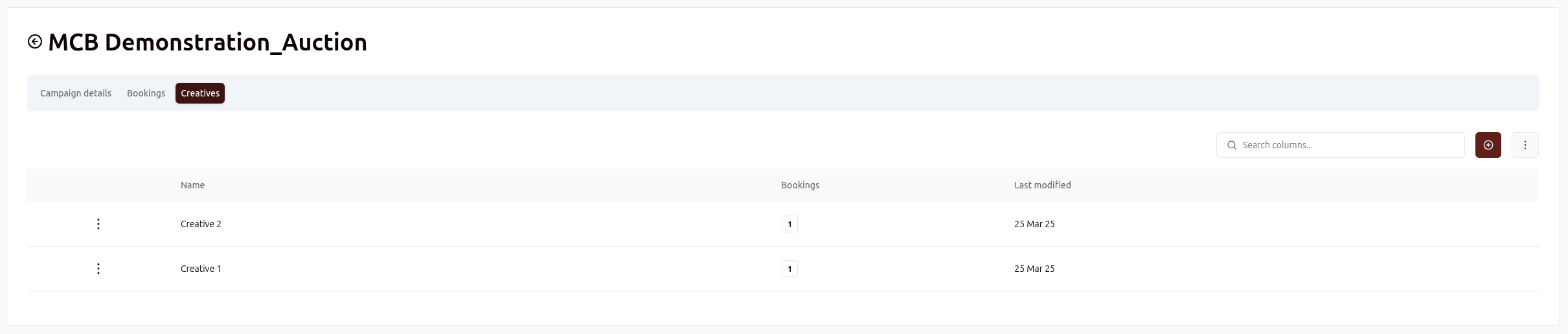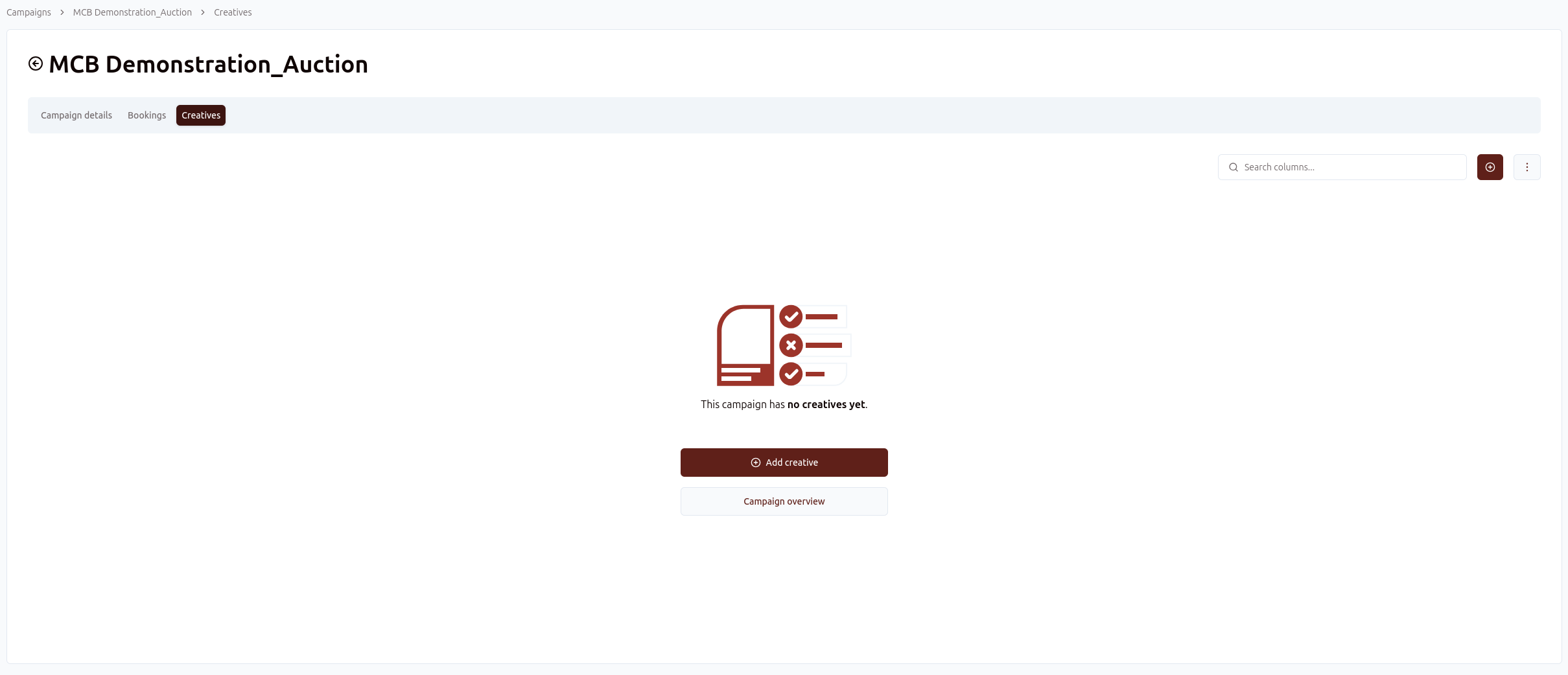 Once you have completed your bookings, click the Creatives tab to the right of Bookings to add creatives to your campaign.