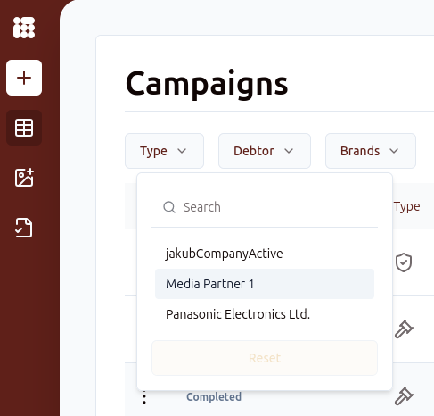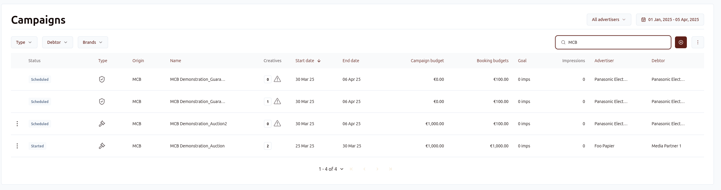 There are several ways to filter campaigns in the campaign screen. Let's start with the advertiser filter: