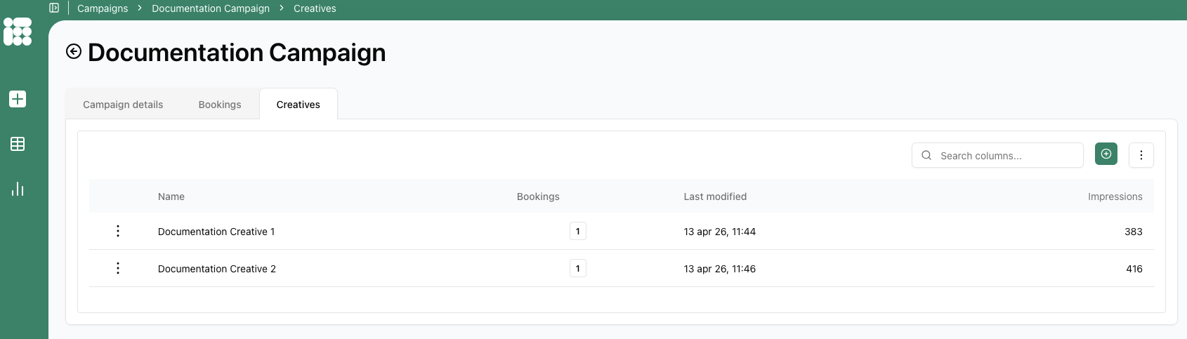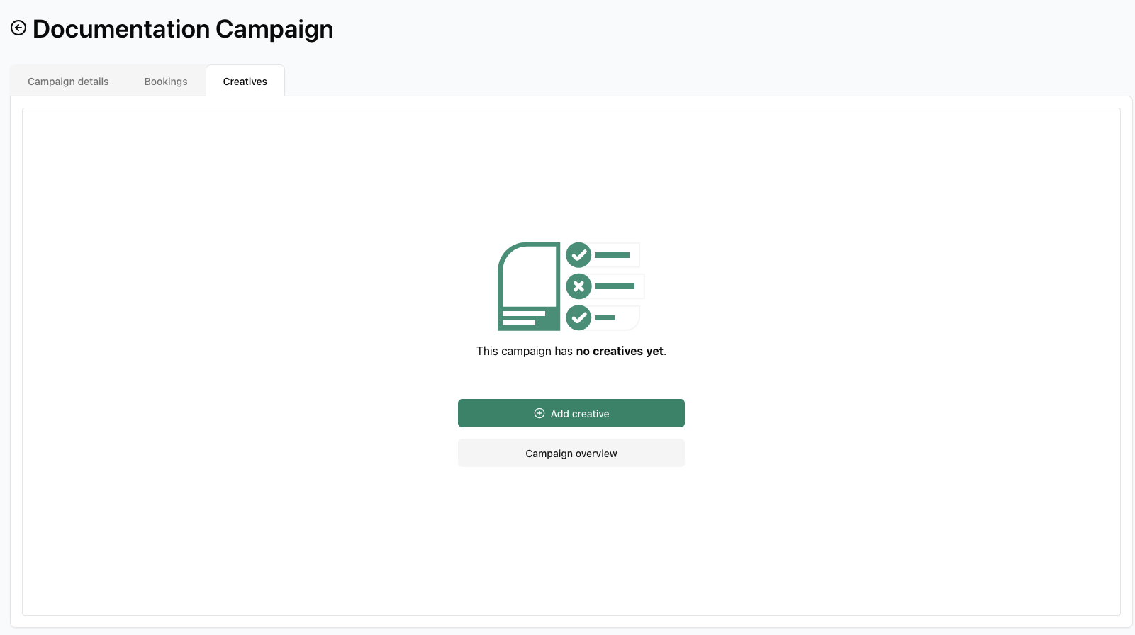 Once you have completed your bookings, click the Creatives tab to the right of Bookings to add creatives to your campaign.
