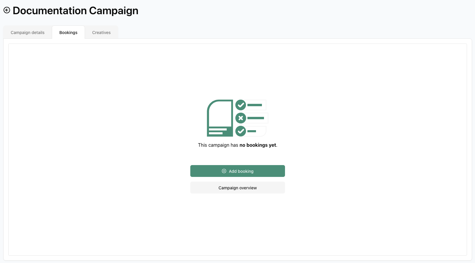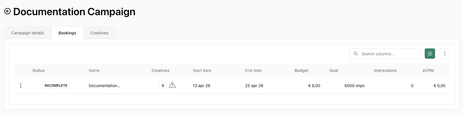 - Incomplete: Campaign doesn't have any bookings or creatives
