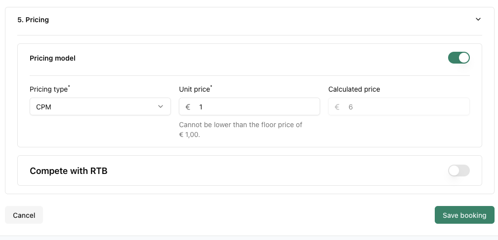 - SOV (Share of Voice): You assign a fixed amount of inventory to the booking, expressed as a %. Actual delivery will depend on competing bookings.