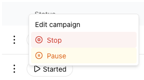 A campaign can have several statuses, depending on the type of campaign:
