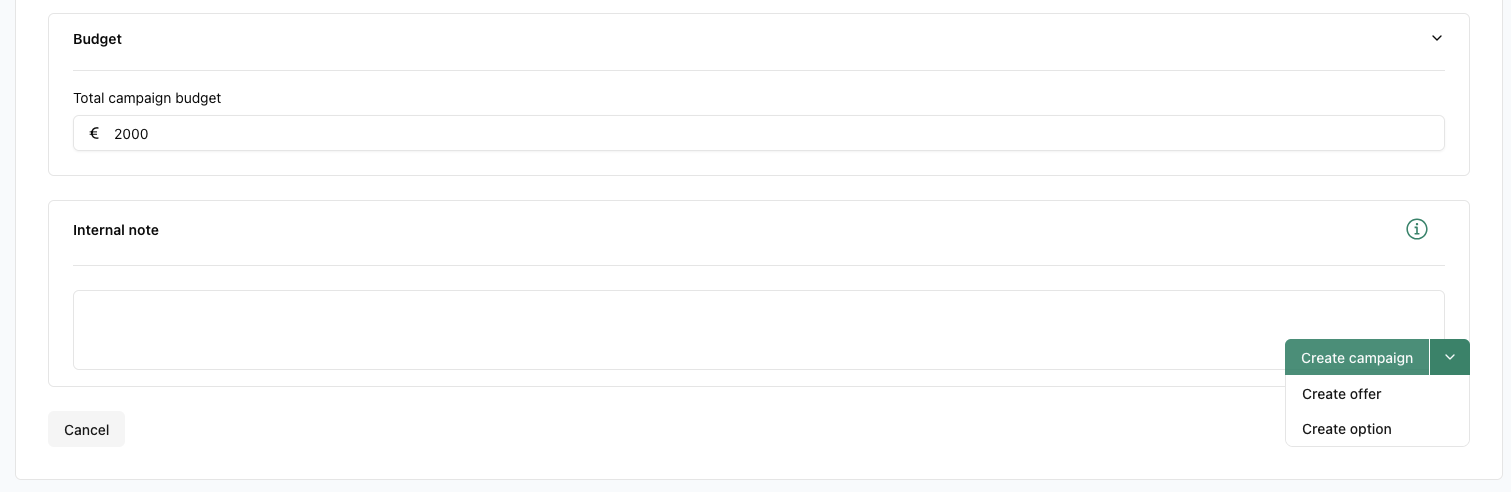 - Internal note: You can leave a note with instructions or important info on the campaign for a colleague.